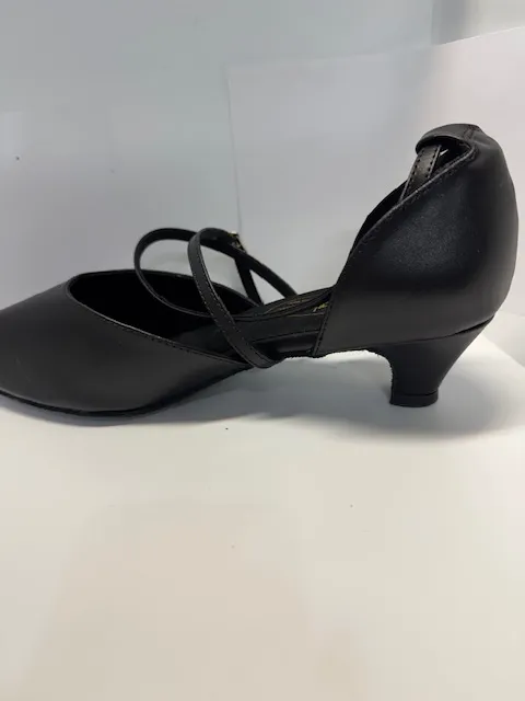 Black Leather Shoe with Peep Hole in Toe with 2.3 Heel