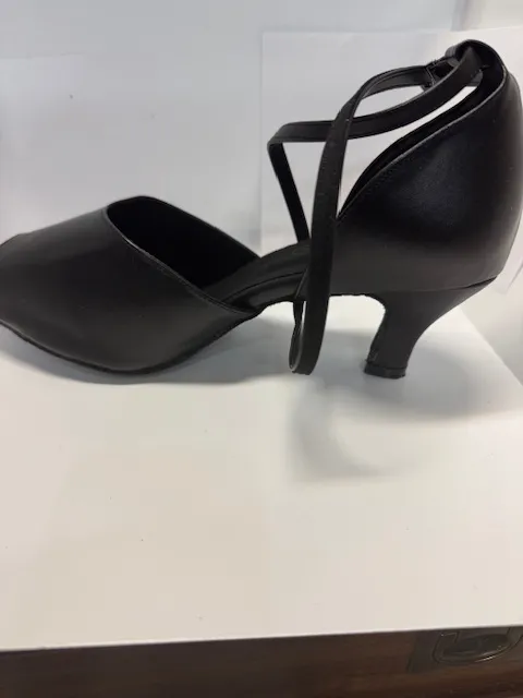 Black Leather Shoe with Peep Hole in Toe 2.2 Inch Heel